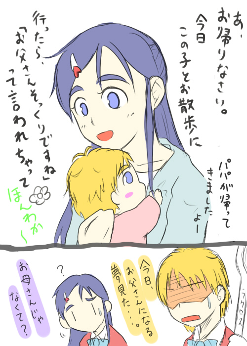 なぎパパはきっとスーツです。毎朝ほのママがネクタイをしめてくれます。